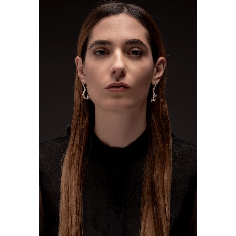 Orecchini in argento 0,925 realizzati con la tecnica della microfusione. Fiammelle che guizzano gentili, accendendosi in un ritmo che man mano si raddolcisce e si fa più morbido e aggraziato. Energia e vitalità, garbo e delicatezza, generosità e simpatia, il gioiello per chi si sente originale, spiritoso, imprevedibile, ma cela in sé una dolcezza che sorprende e incanta.